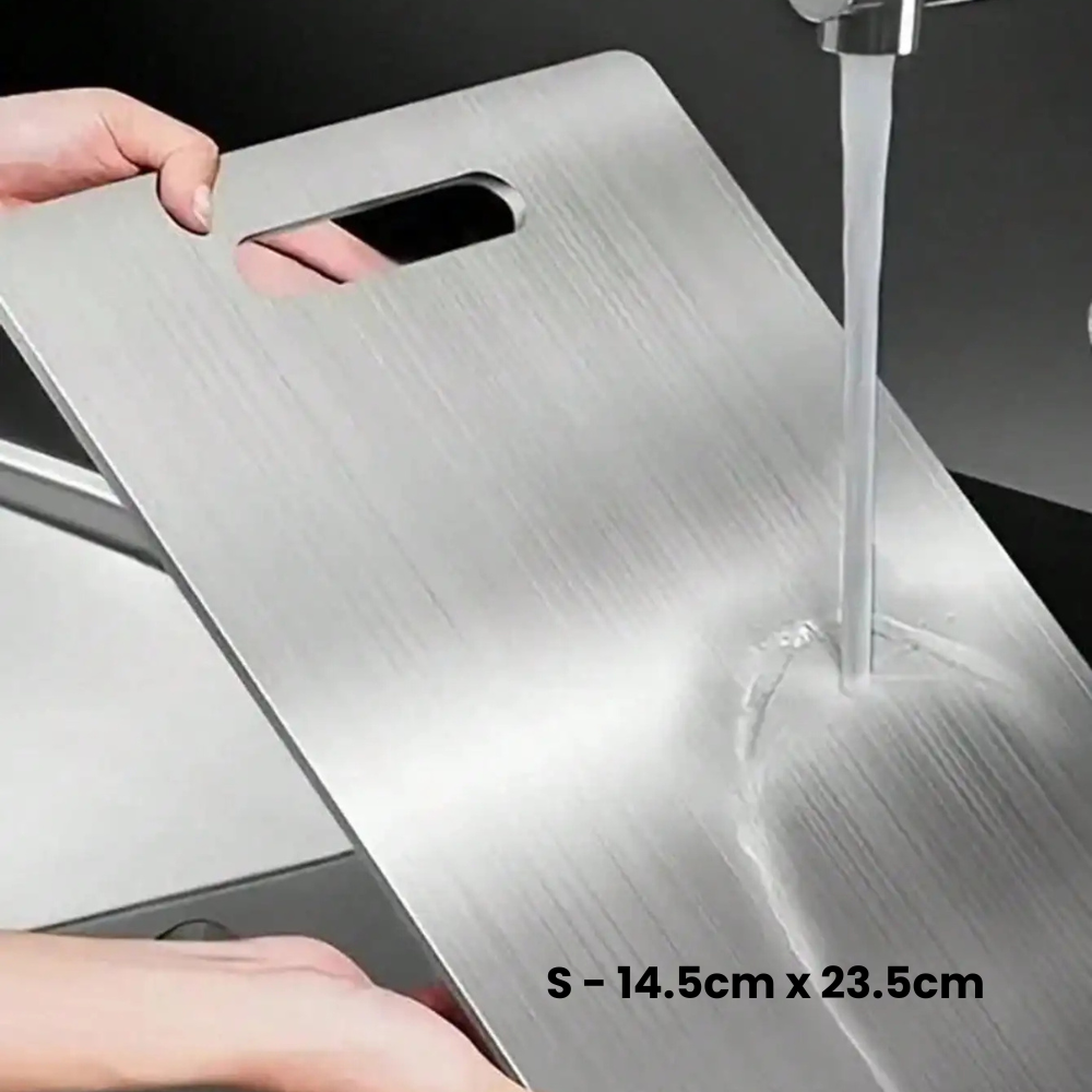 Hör auf, alle 12 Monate verfärbte Holzbretter oder zerkratzte Plastikbretter zu ersetzen. Titan ist nahezu unzerstörbar und bleibt über Jahrzehnte wie neu. Resistent gegen Rost, Korrosion und tiefe Schnitte.